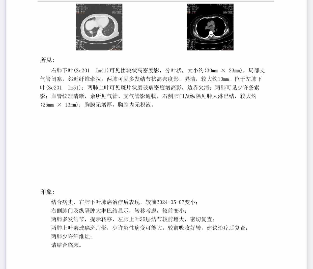 21日快没药了就去复查了配药了,ct显示肿瘤和淋巴变小,医生说效果不错,但是左肺上有个结节提示变大,密切随诊,有经验的友友帮忙看看,是什么情况?后期是不是要加化疗了?
