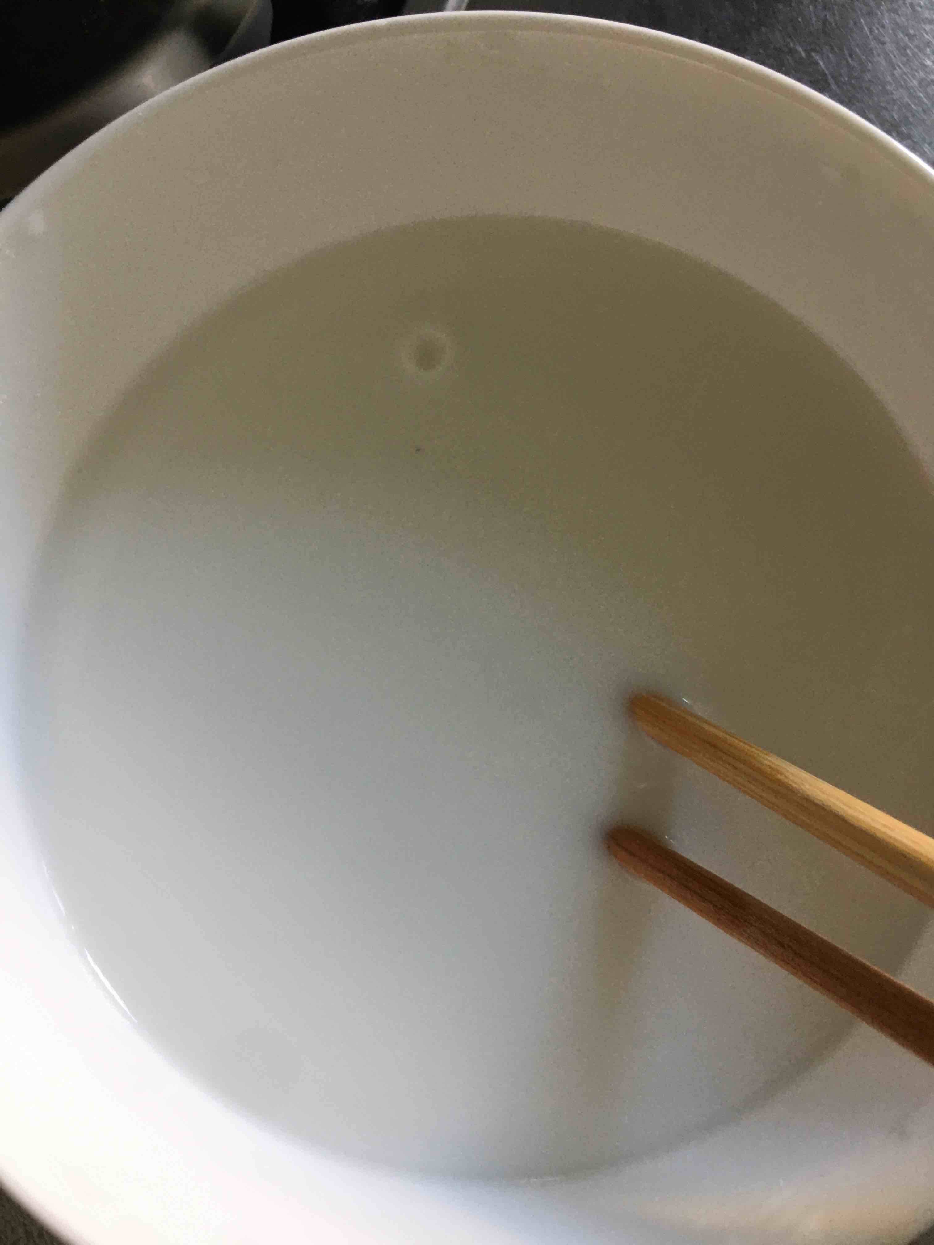 用的是豌豆淀粉,凉粉比例为1:6,豌豆粉一小碗加入一碗水稀释,再用锅放入5小碗水烧开后加一点盐,调成中火加入稀释好的豌豆淀粉水,快速搅匀,烧至冒大泡关火,给它自然冷却,也可倒入碗中冷却,然后切块或刨成丝放上自己喜欢的调料即可。