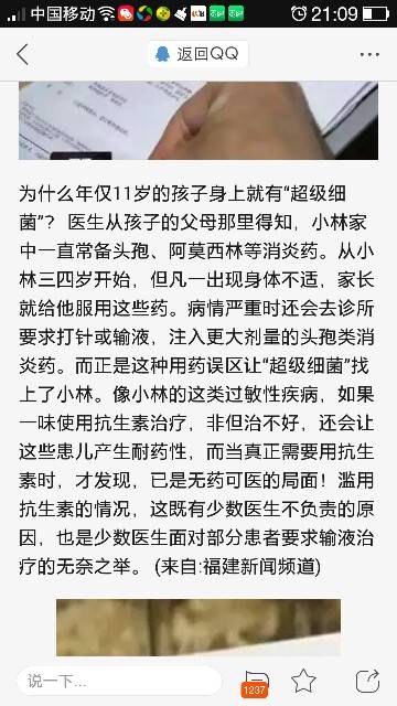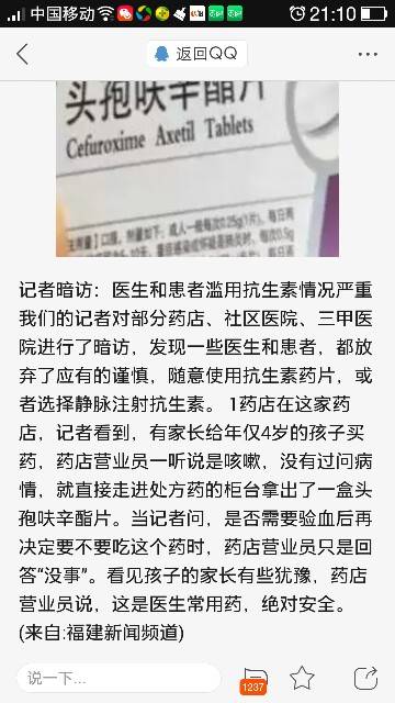 现在的医生不管是什么病,都要求吃抗生素 ,有时候我说家里有抗生素,她们还说我家里的不好,要吃另外一种,有的医生说直接打针,我说不打针就吃药,医生还不高兴[抓狂]职业道德都去哪里了?我家里的抗生素都可以开个药店了,我拿回来很少给孩子吃