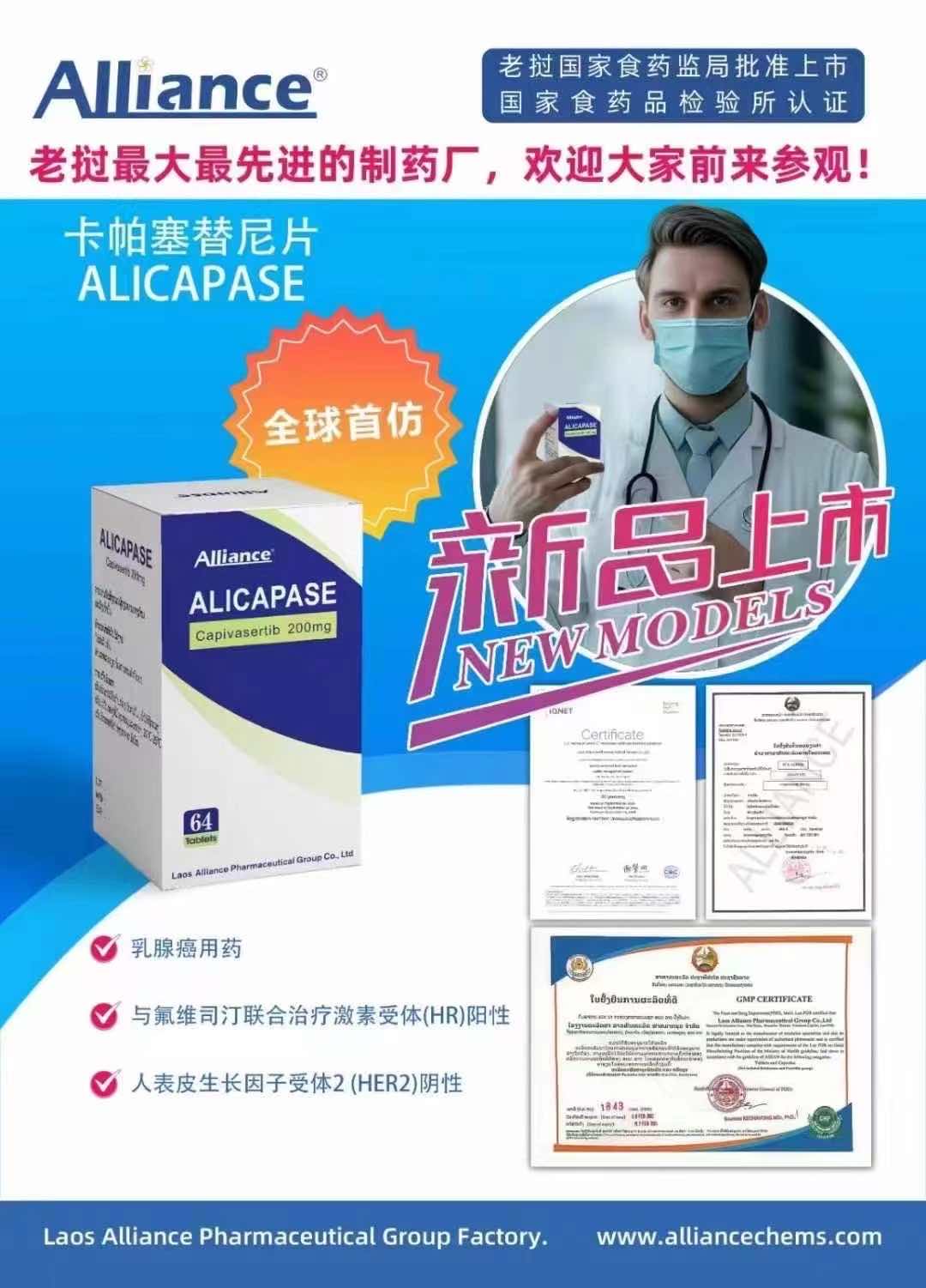 【适应症】卡帕塞替尼是一种酶抑制剂,适用于与氟维司汀联合治疗激素受体(HR)阳性,人表皮生长因子受体2 (HER2)阴性,局部晚期或有一个或多个PIK3CA/AKT1/ PTEN改变的转移性乳腺癌的成人患者。