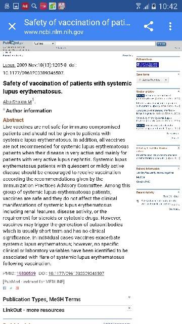 我们的病是免疫紊乱,而疫苗是增加我们自身的免疫抵抗力。刚刚简单地看了一下文献(如图),对于得SLE的我们打疫苗还是要小心。