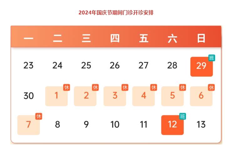 为方便广大群众就医,根据医院2024年“国庆节”放假通知,现公布国庆节期间门诊安排如下:
