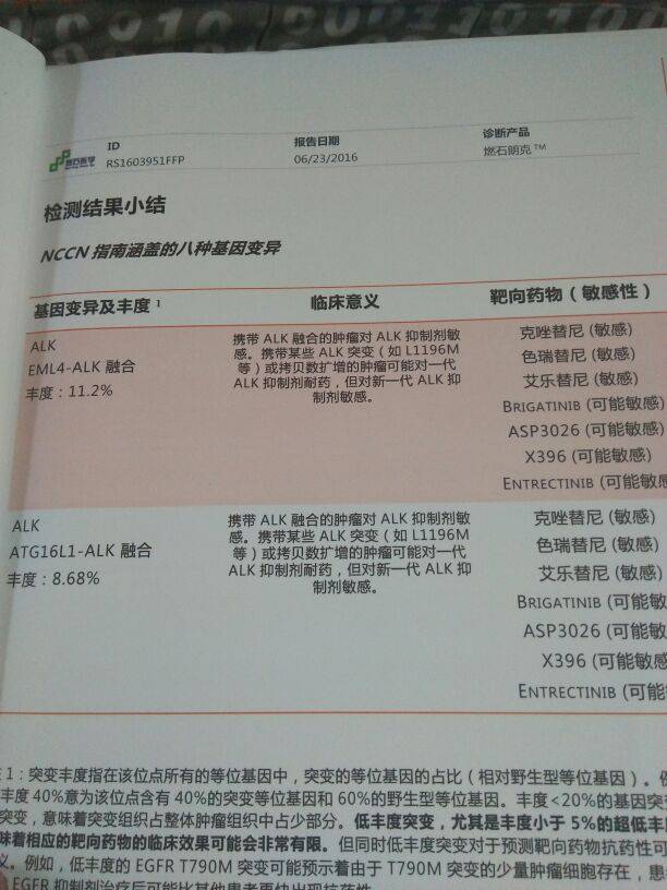 陈波医生ALK融合很多选择,检测报告里提示的药都可以考虑,目前比较热点的进展探讨就是是继续先用一代,还是直接用二代,这个点你可以多关注一下,结合自己的情况选择