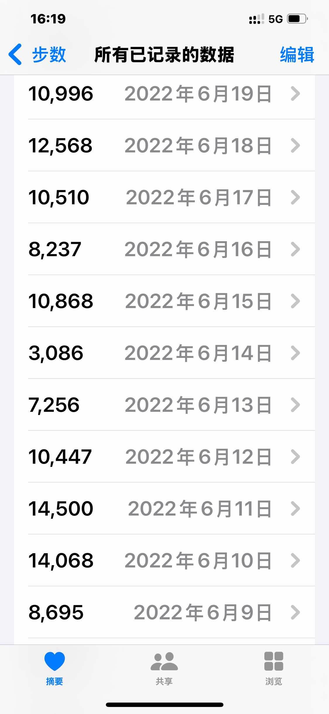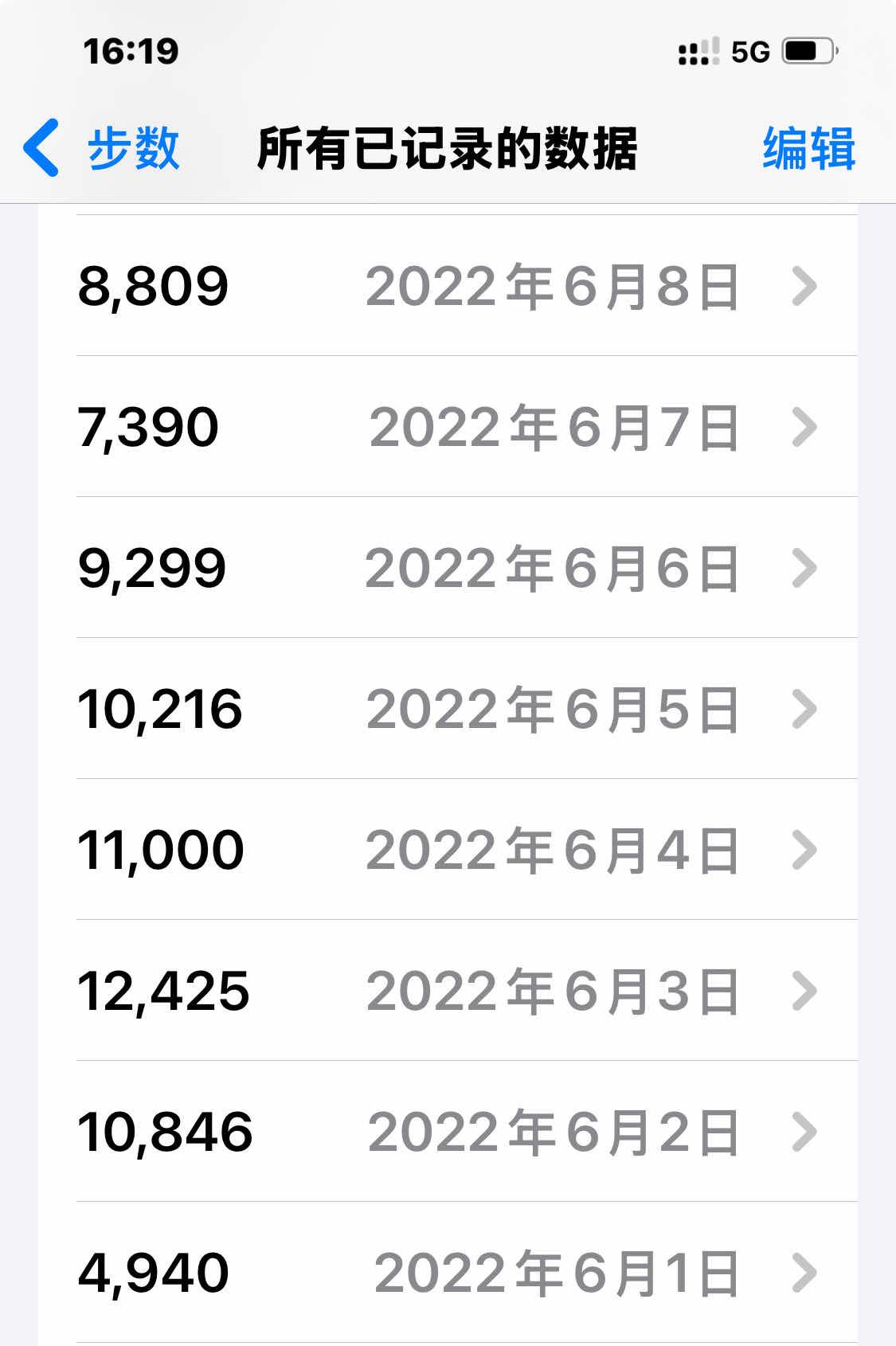 今天翻看了一下我的行走步数,2022年缺了6月份的数据,今天补上吧。