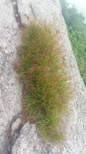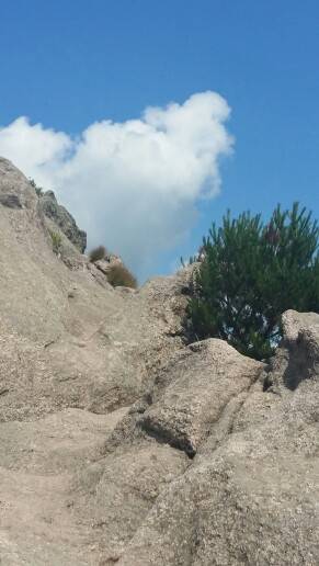 白云悠悠,坚强的小草在石缝中美丽绽放!