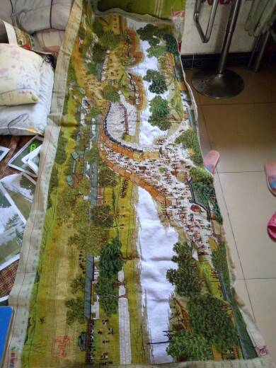 这是我刚刚生病那半年绣的,刚刚生病的时候吃激素脸一下子变的很胖,不想出去只想呆在家里。于是我就买这幅清明上河图来绣