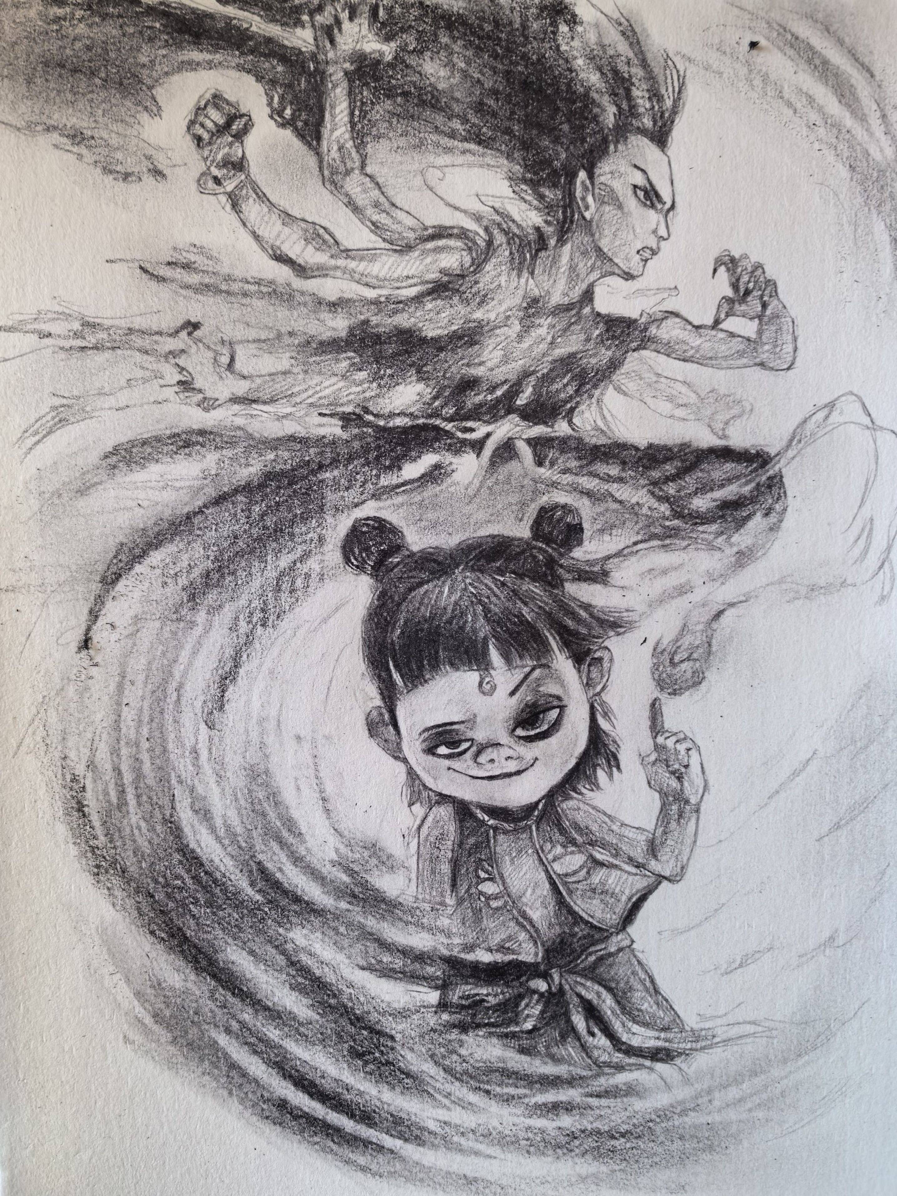 脑核磁复查完有一个月了,伽马刀还算成功,有点少量出血,可能我的肿瘤稍微有点大,恢复时间长了一些,但还有一个不太好的消息,就是好像又有一个新的病灶,报告写的是比上次的增强值变大,医生没说什么,我的主治医生说小的病灶用药控制就行,等下次复查再看看吧,下周去复查肺部ct,希望能顺利过关吧。来一张自己画的哪吒。