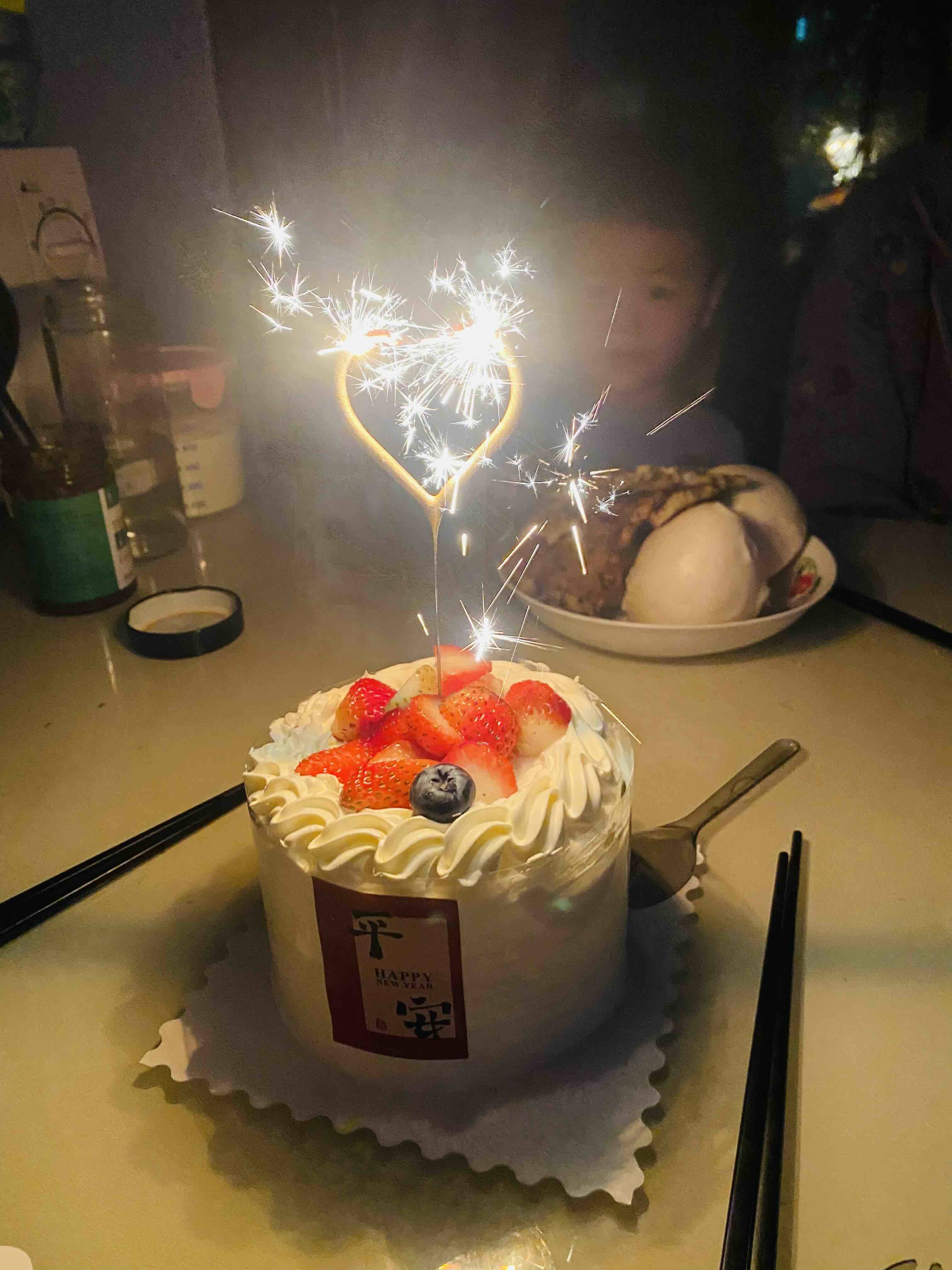 当然了,那也得意思意思,和闺女又出门给爸爸买了一个小蛋糕,已经来不及定做生日蛋糕了,