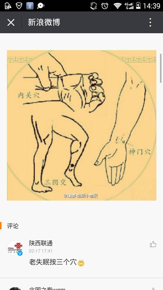 【老失眠按三个穴】中医认为,失眠的原因主要为脏腑机能紊乱,尤其是心的温阳功能与肾的滋阴功能不能协调、气血亏虚、阴阳失调等;运用交通心肾、调节气血的手法,可用拇指按揉以下穴位:内关,神门,三阴交;这三个穴互相配合,每天按揉5至10分钟,就可以起到安神定志的作用。