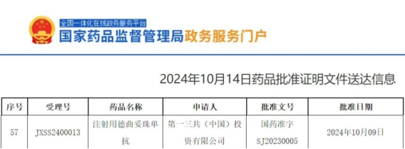 基于DESTINY-LUNG01研究的积极结果,在2020年德曲妥珠单抗被美国食品药品监督管理局(FDA)授予“突破性疗法”认证。随后,在2022年8月,凭借 DESTINY-LUNG02研究的进一步数据,德曲妥珠单抗获得了FDA的加速批准,成为全球首个用于治疗HER2突变转移性非小细胞肺癌(NSCLC)的HER2靶向药物。目前已被美国国立综合癌症网络(NCCN)和中国临床肿瘤学会(CSCO)指南一致推荐,成为治疗HER2突变肺癌的重要选择。