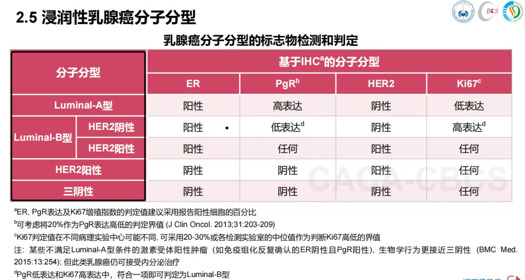 乳腺癌的分子分型是根据肿瘤的生物学特征来分类的,根据中国抗癌协会最新指南[1]将乳腺癌分子分型主要分为以下四种: