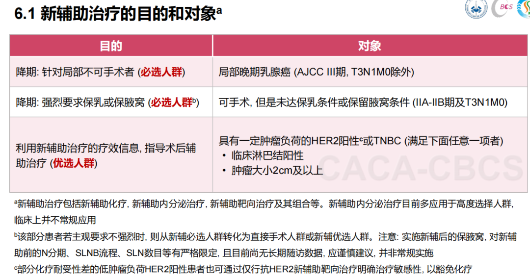 一般来说谁适合做新辅助治疗?根据指南建议如下: