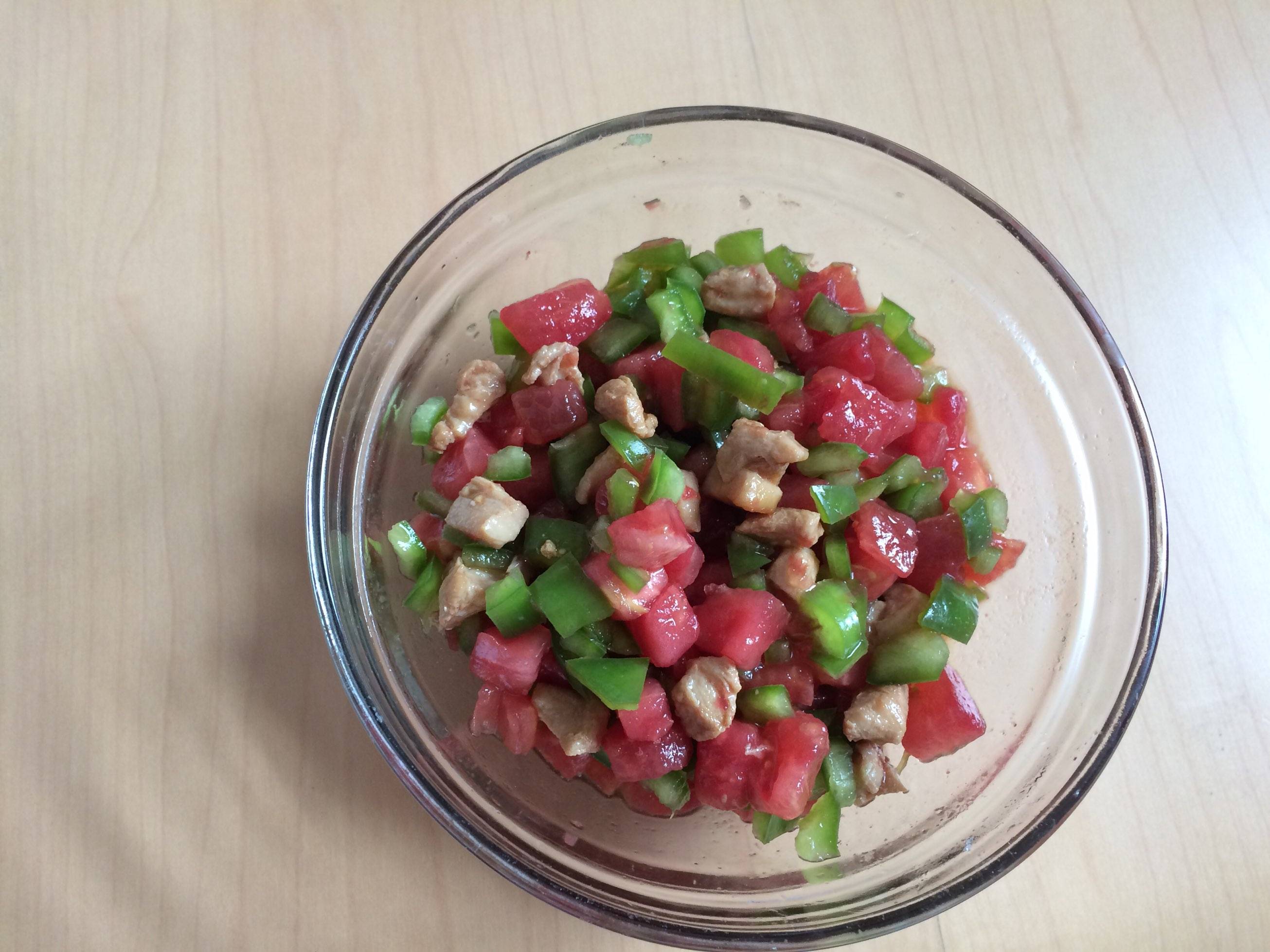 颜色搭配的很好,有青椒、西红柿和肉沫对不