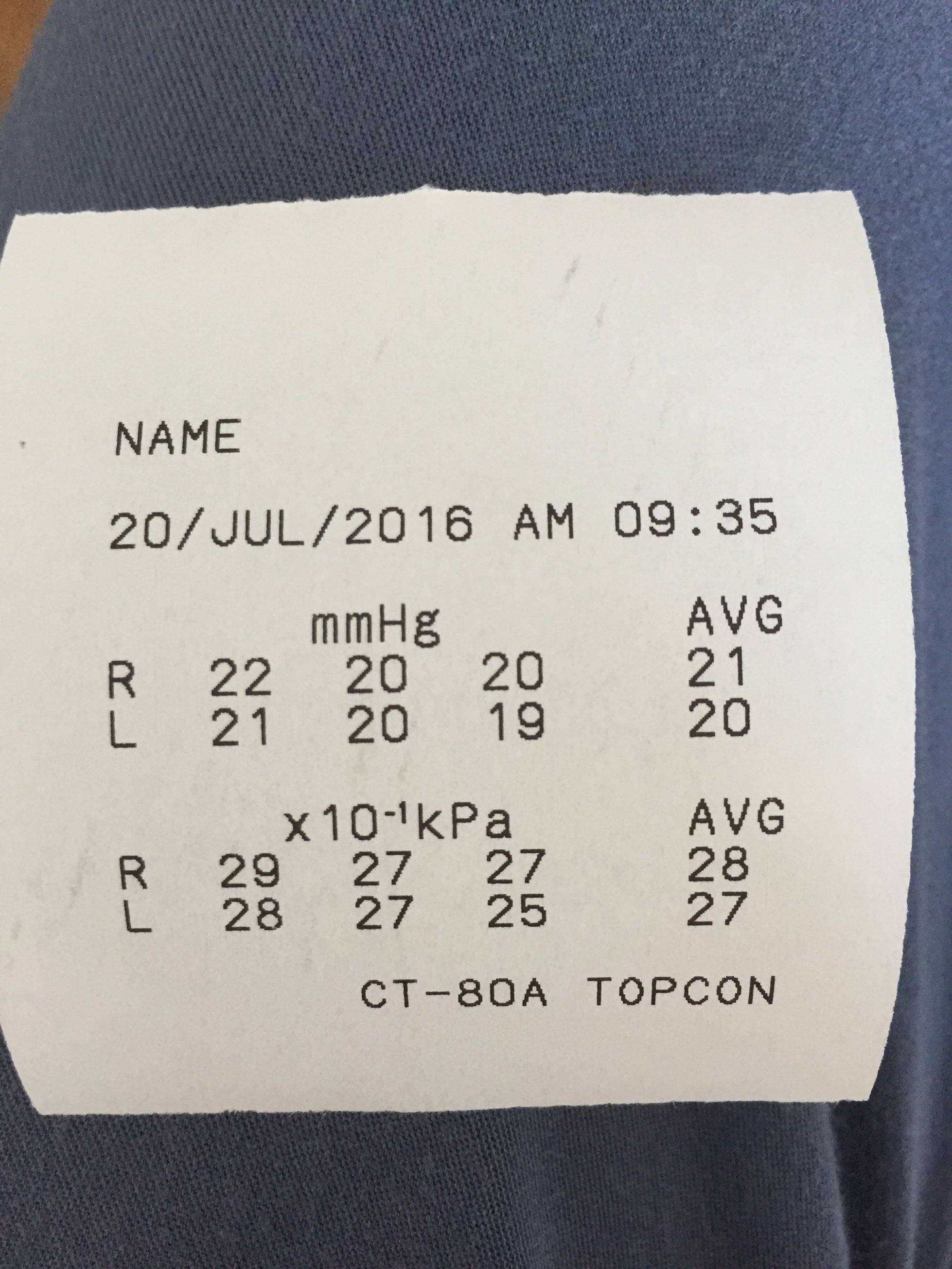 去医院拿药,今天老公没时间,爹地陪着去的;查了骨密度,正常;挂了眼科查了眼底、眼压、视野,有点结膜炎,拿了眼药水,视野眼底都正常,眼压接近临近值,医生说勤查点,没事…以后少玩手机吧