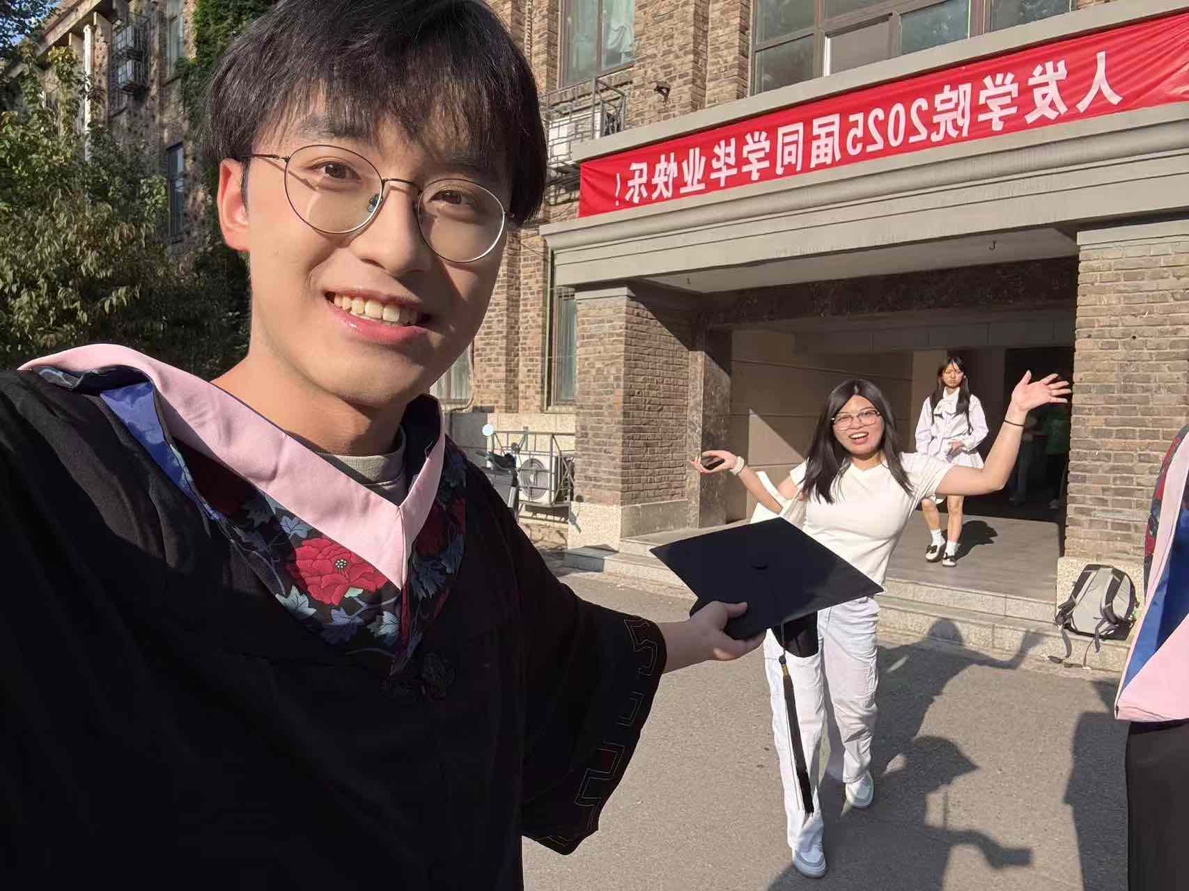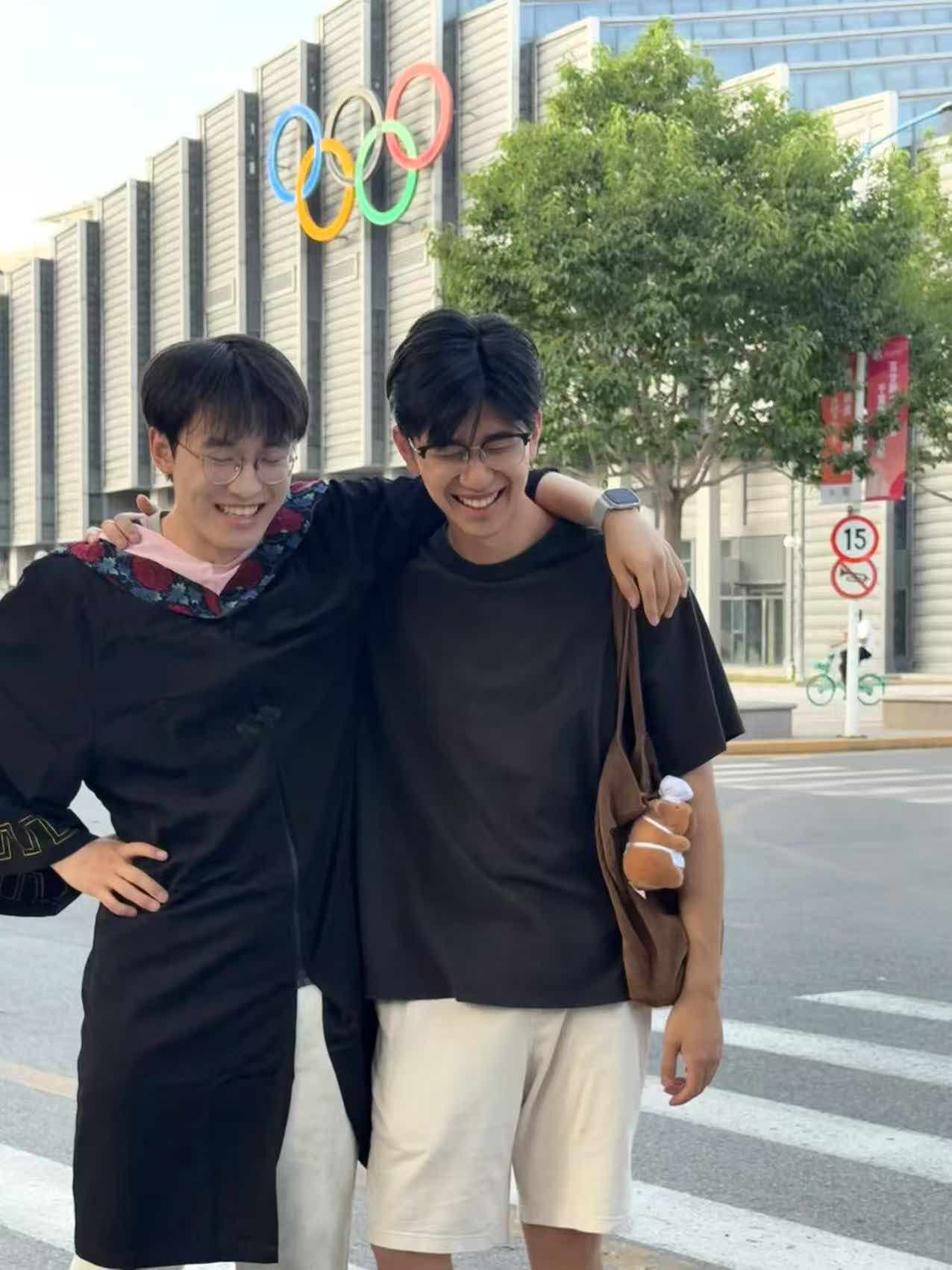 昨天回校的孩子今天穿上学士服拍他的毕业照片,青春飞扬的岁月,值得纪念!