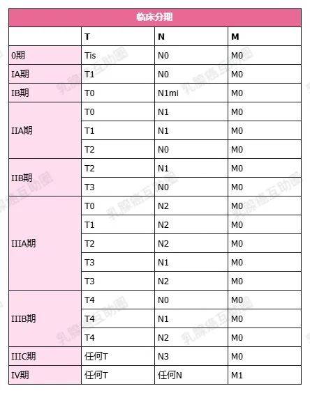 了解TNM分期之后,我们就可以将它们逐一归类,与病情严重程度建立关系,转化为我们更加熟悉的乳腺临床分期。