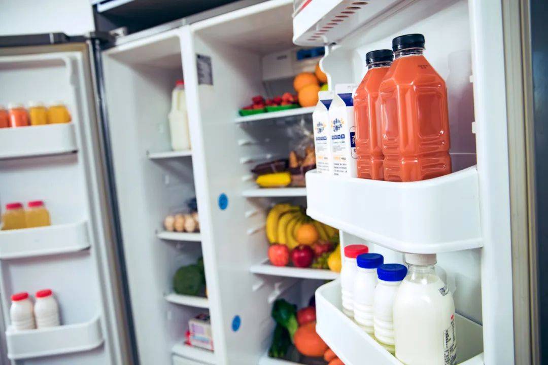 牛奶、生肉等易腐食品放置于靠近冰箱后部的位置,而冰箱门上的置物架适合存放调味品等不易腐败的物品。