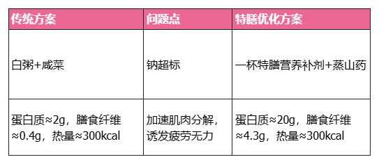 我们可以发现,对比传统方案,特膳优化方案的蛋白质营养密度提高了不少,摄入分量相同的食物,高营养密度饮食可以实现: