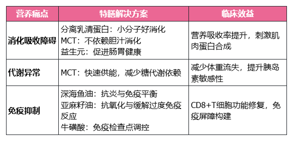 随着肿瘤患者需求及生产技术的发展,市场上的营养补剂正快速迭代着。与传统单一营养补充剂相比,特膳营养补剂为肿瘤患者定制的“营养特战队”正通过三重机制突破营养困境:
