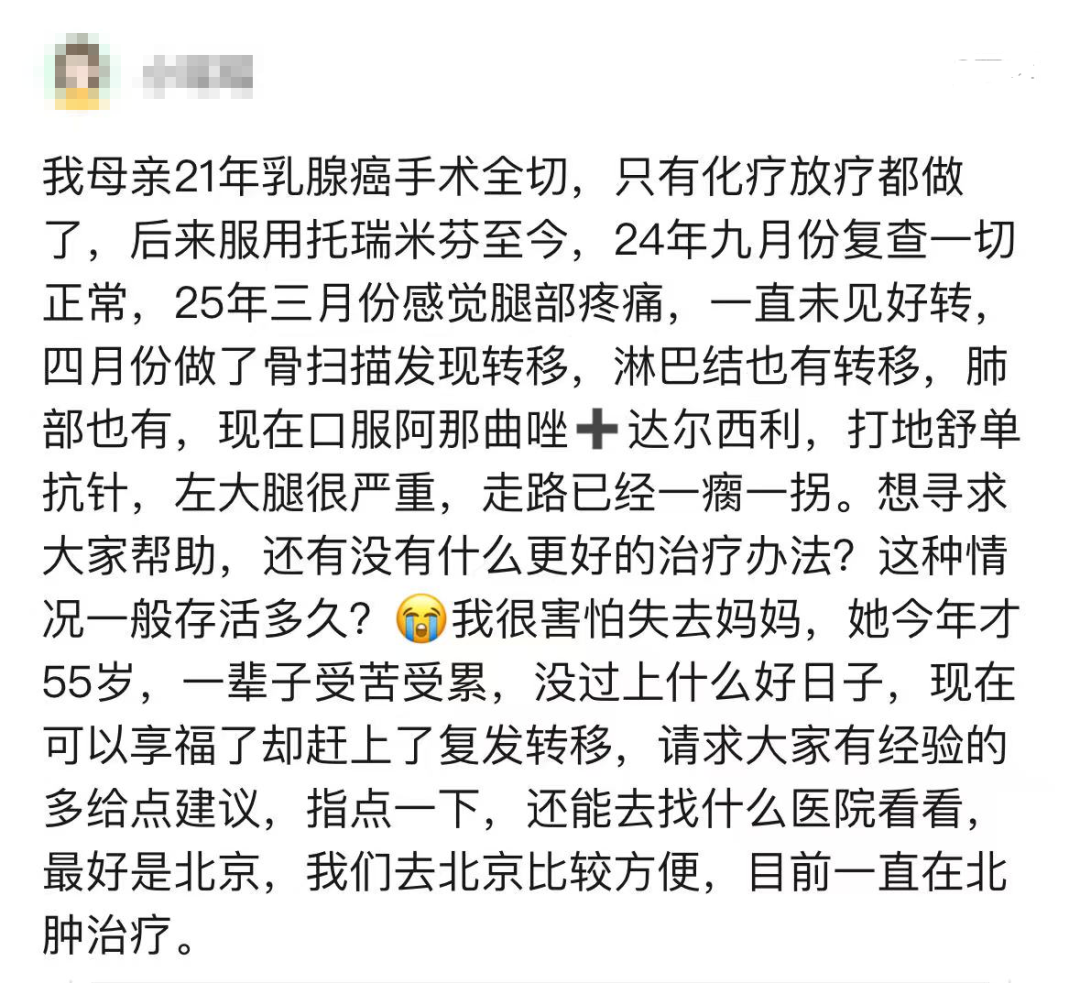 妈妈乳腺癌骨转移,走路一瘸一拐,能有什么更好的治疗方案吗?