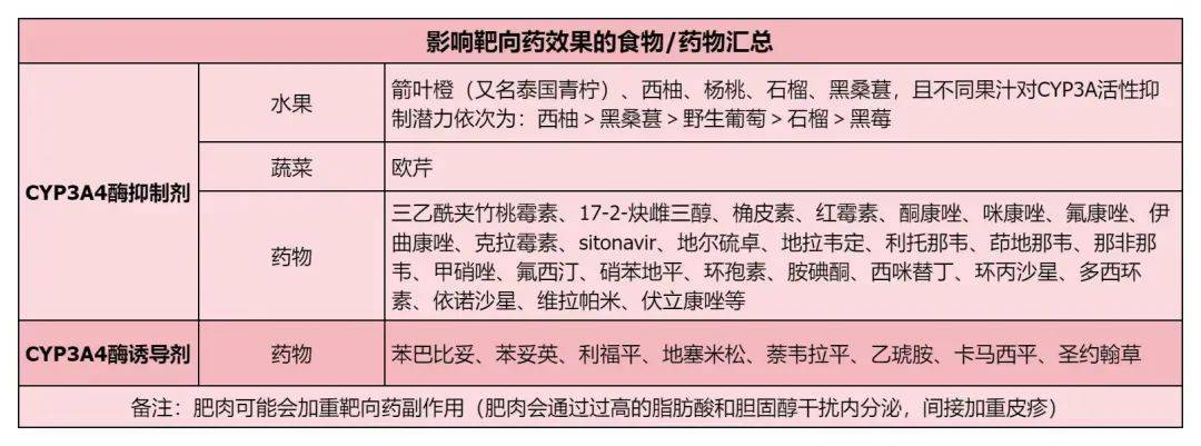 和其他CDK4/6抑制剂一样,瑞波西利的代谢离不开CYP3A酶,因此应避免与强效CYP3A抑制剂、CYP3A诱导剂、抑制CYP3A活性的食物(如西柚)同时服用。