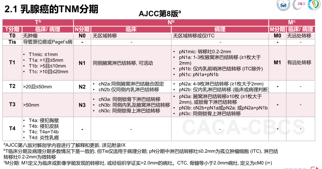 分期依据TNM系统:T(肿瘤大小)、N(淋巴结转移)、M(远处转移)。淋巴结转移越多、肿瘤越大,预后越差。