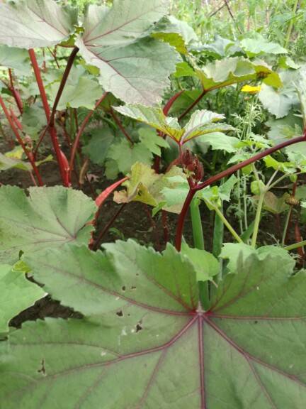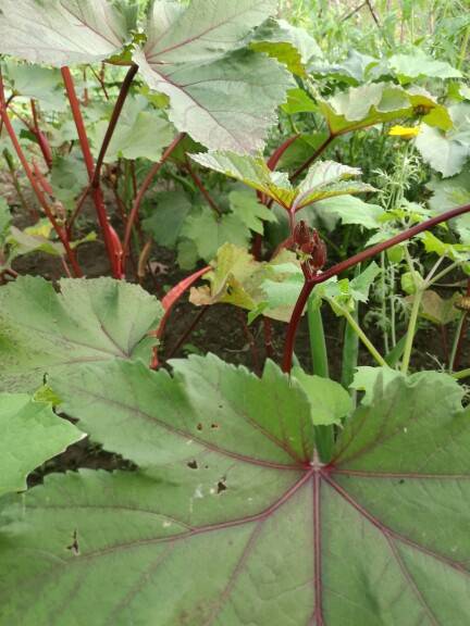 红色的秋葵长势喜人!