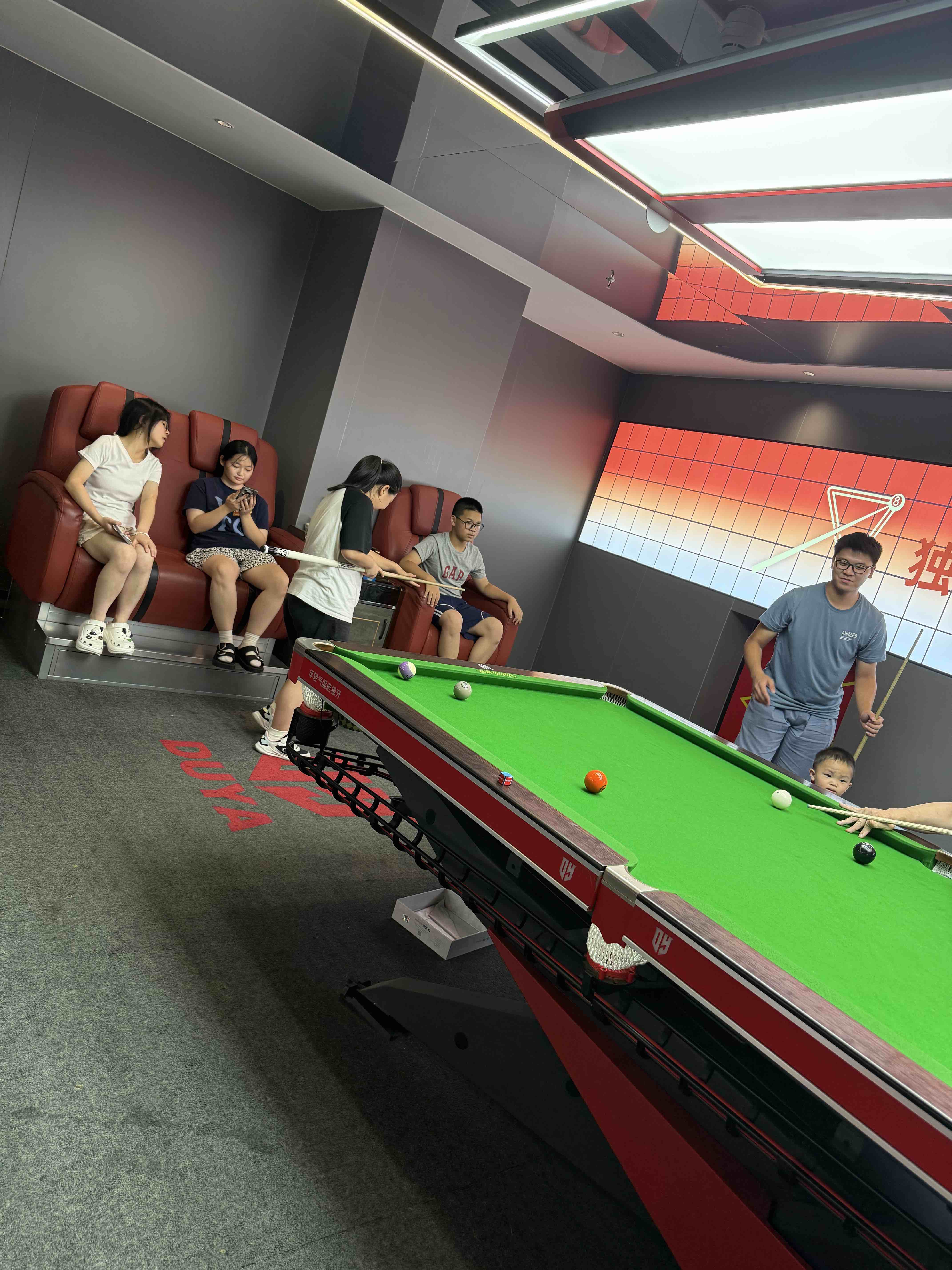 吃完饭,带着几个侄子侄女来打桌球