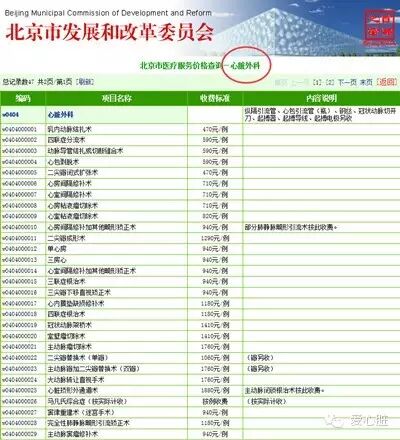 心脏外科手术项目及收费标准(举例)