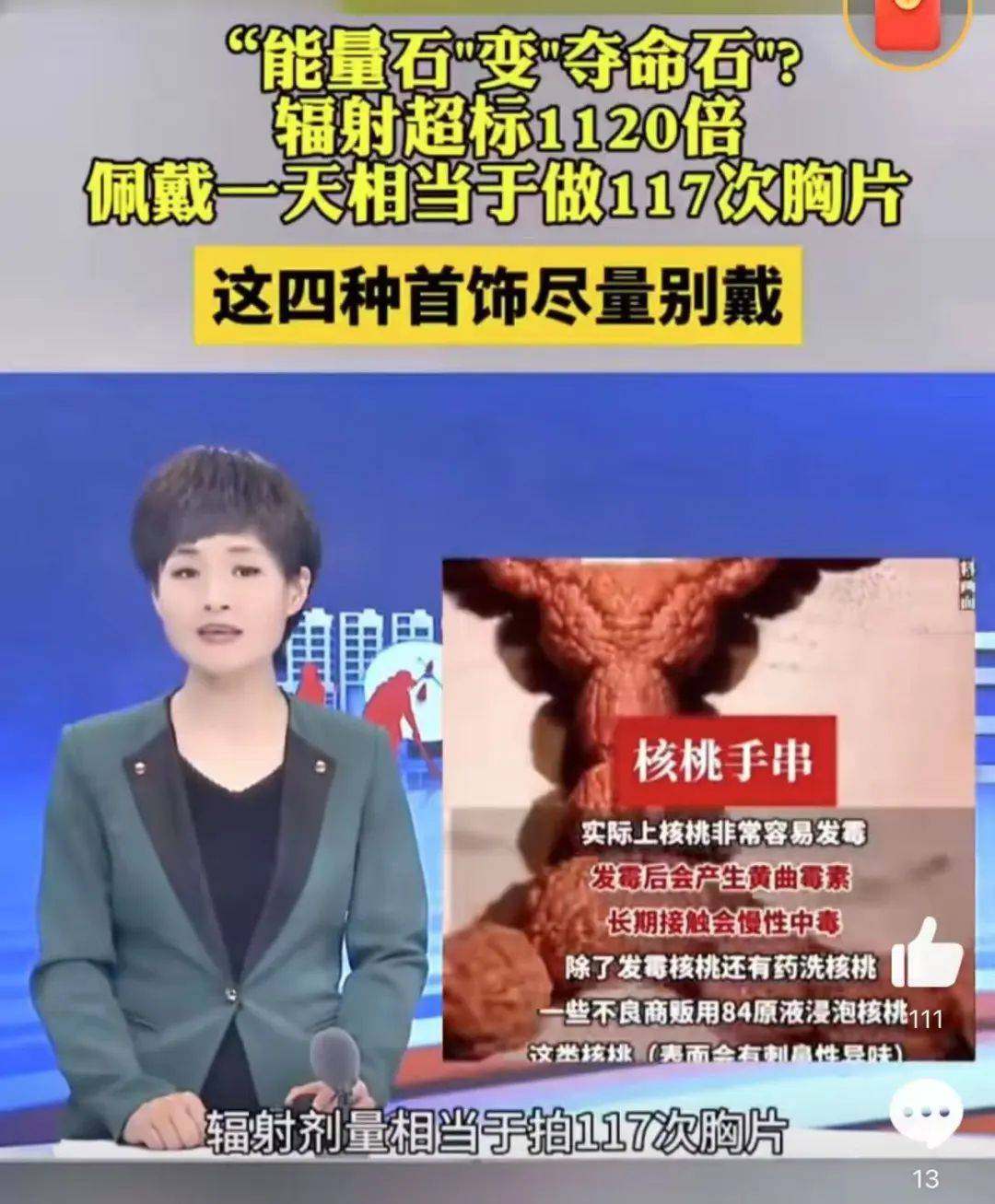 这类商品常被吹成“天然矿石”、“健康护身符”,号称可抗癌、提高免疫、调节能量,却很少见到合格的检测报告。放射性测试曾测得类似饰品年辐射可达数 10 mSv[1]。而一个医疗用胸腹 CT 就是 7 mSv,佩戴它,它可能每天就给你“免费”拍一台 CT。
