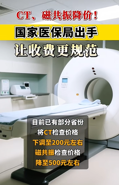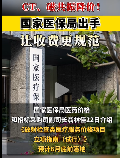 5月22日,国家医保局公布新收费标准:X射线成像<55元、CT平扫<255元、磁共振≤505元、PET-CT≤2500元,目前已经有20多个省份制定了具体方案,降幅最多超38%!