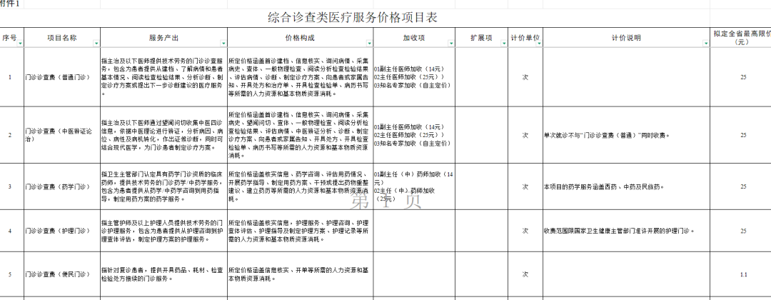综合诊查方面,广东普通门诊诊查费限价25元,住院床位费根据不同病房设定为56-90元不等;内蒙古基层医疗机构“一般诊疗费”从10元降至3元或更低。