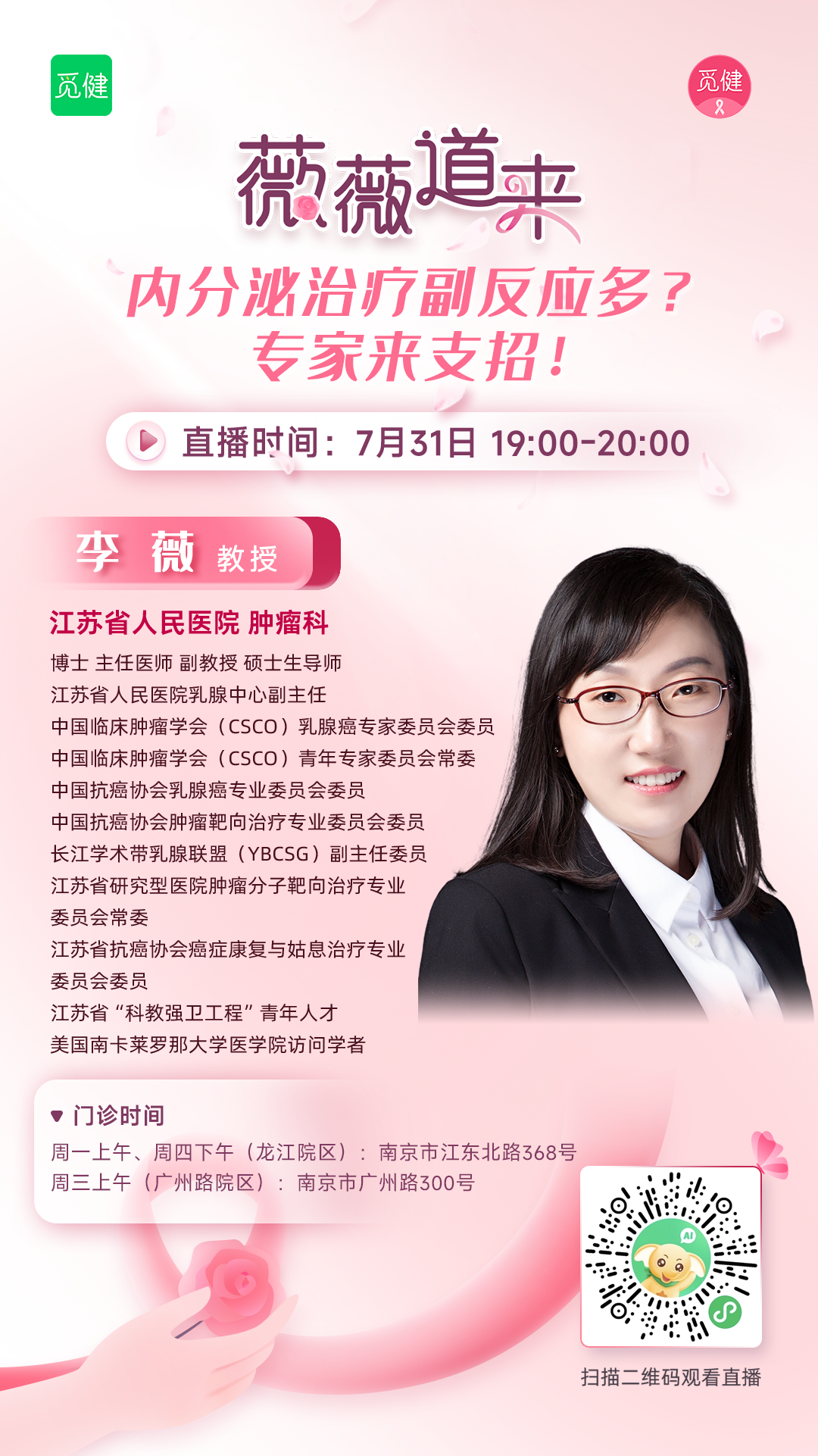 亲爱的觅友们,今天的直播文章,嘉宾是江苏省人民医院肿瘤科乳腺中心李薇教授。我们主要整理了大家关心的这些问题:
