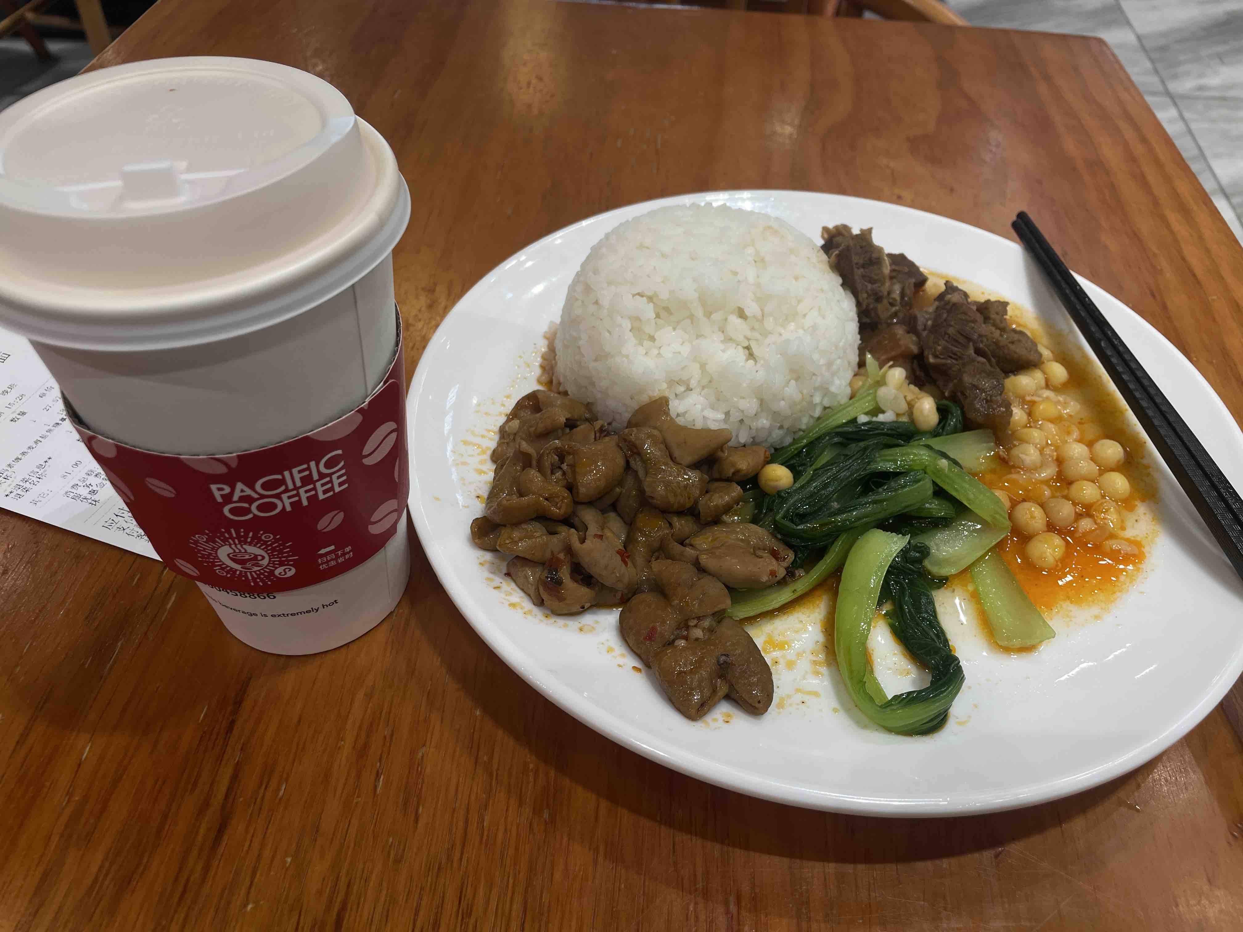 在机场的晚餐是中国移动请的,全球通会员的福利。有一杯免费咖啡,为了不浪费我也喝完了,也不怕影响睡眠,这羊毛薅的。
