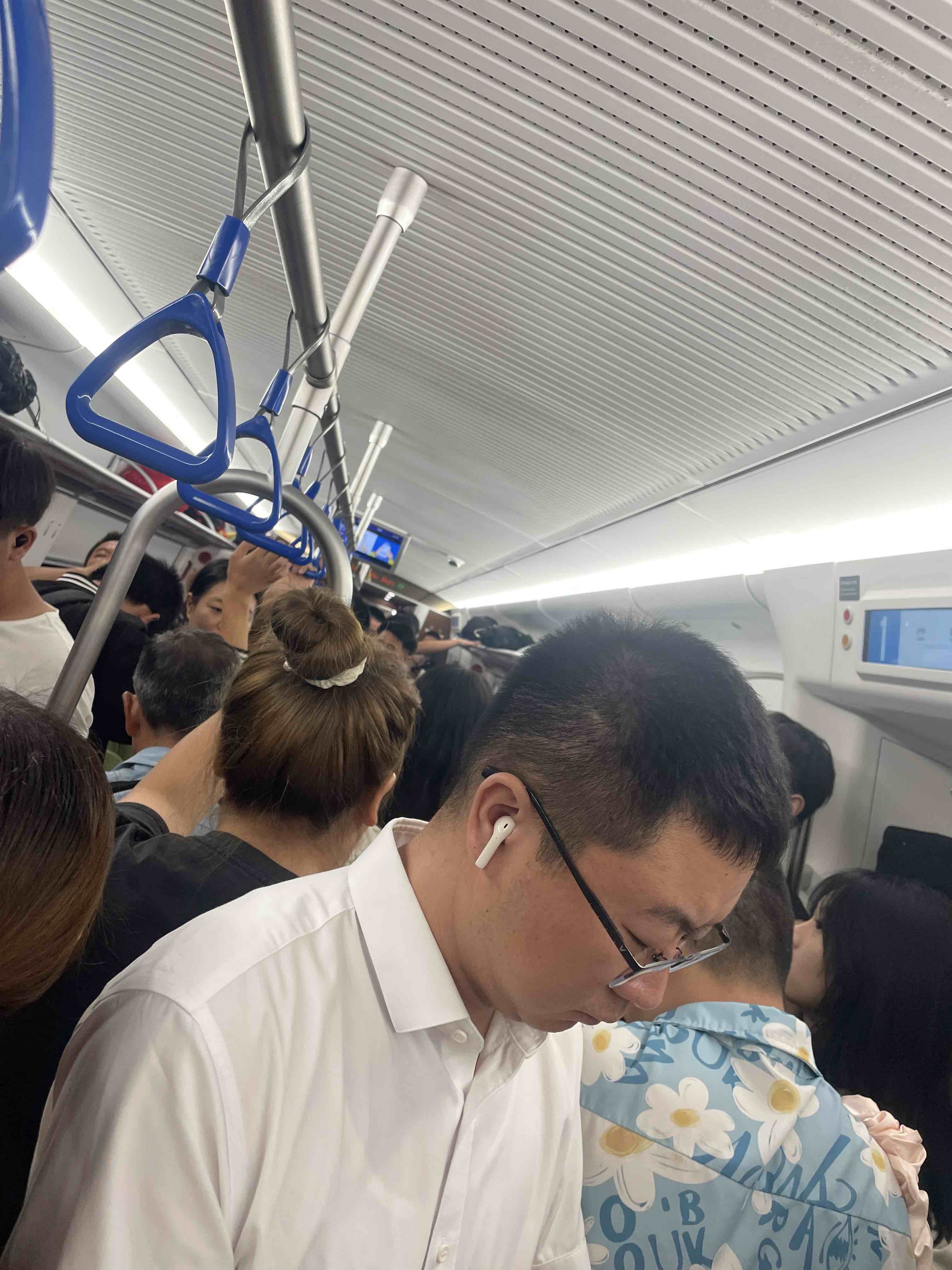 开启一个人说走就走的旅行,没人拖后腿,一个人甩脚就走,一两万步不在话下。坐高铁到机场,没想到遇到了一趟比地铁还挤的高铁。我买的站票,站着挤得动不了,有个小伙子买的坐票,可他挤不到他的座位去坐,只能和我们一样站着。