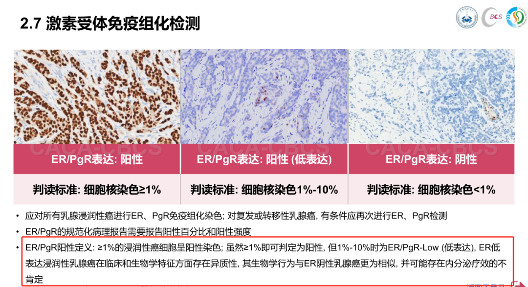 简单来说,ER和PR分别代表癌细胞是否“接受”雌激素和孕激素的信号。如果检测结果显示ER或PR阳性,当其表达≥10%,说明这些癌细胞的生长受到体内雌、孕激素的“刺激”更容易增殖。