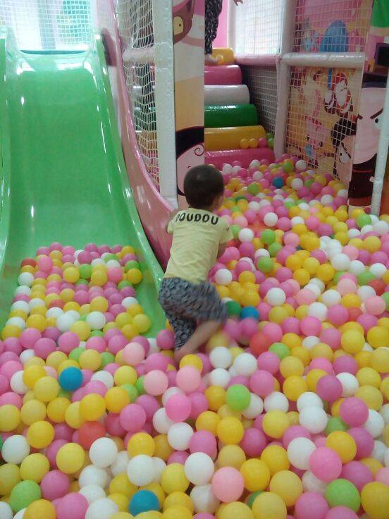 小孩好喜欢把自己埋在彩球里。