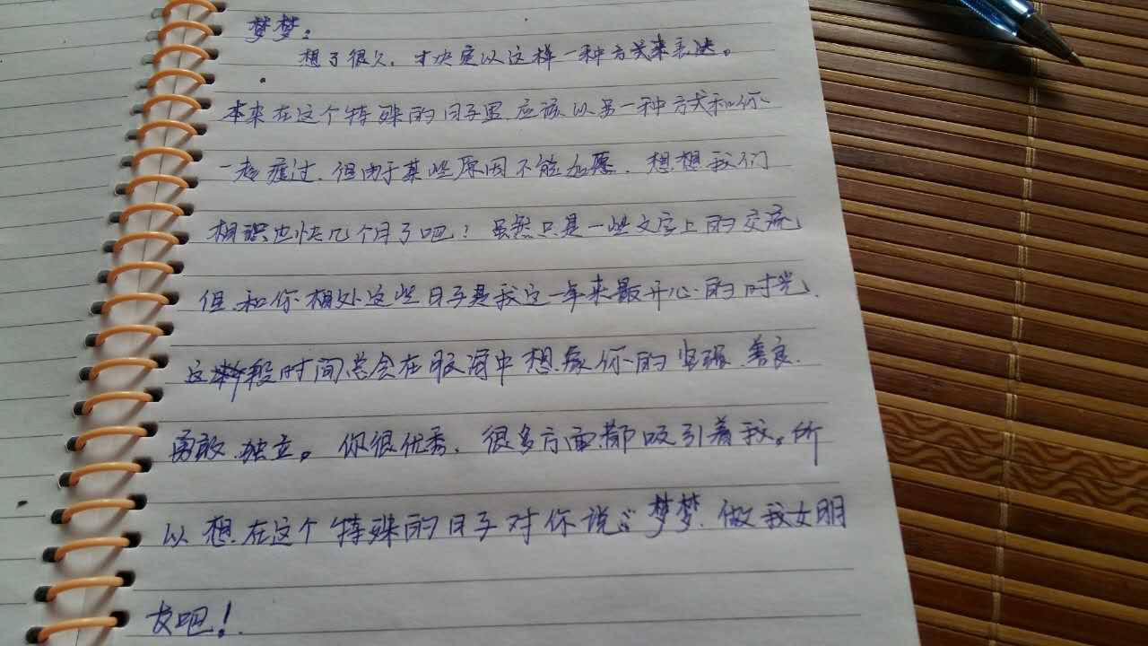 现在都电脑时代了,还写信的人真的很真诚,而且个人认为是个谨慎成熟的人,有点害羞的善良的人,接受吧,这样的人不多了