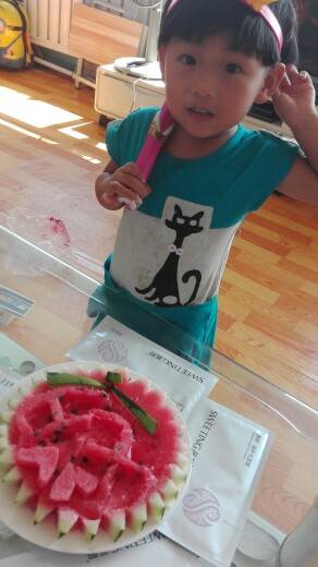 大头娃娃这西瓜吃的有意思