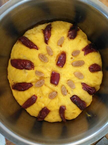 我也做,但是我不放糖,就放红枣,葡萄干搅拌在面糊里(多放点),就跟甜了,我们最好不吃白糖。