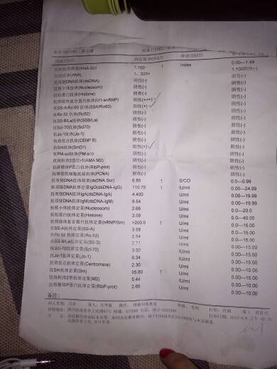 2012年1月的样子手上开始长类似冻疮的红斑,以为是长冻疮没有其他症状一直在县医院以皮肤问题治疗可是到4月的时候还没好转就到南充川北医学院皮肤科检查确诊系统性红斑狼疮。