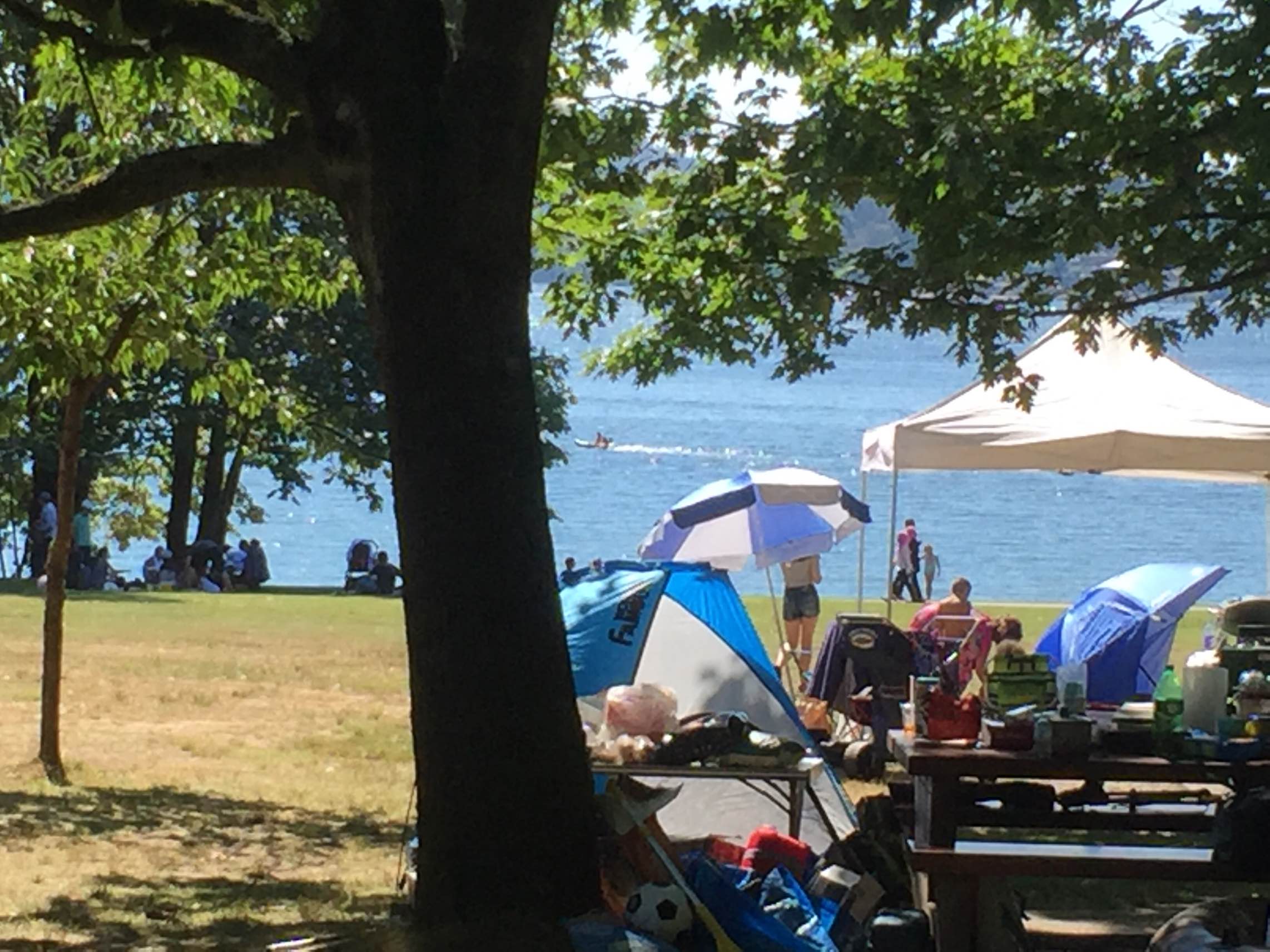 女儿和同学去beach了,就这样,我们"老两口”,开着车,吹着海风,沿着海岸走走停停,在海边的大树下坐了三个小时,望着远处海上乘风破浪的帆船,面前野餐其乐融融的一家家,沙滩草坪上嬉戏的孩子们…这就是一种平淡而恬静又不失幸福的生活。