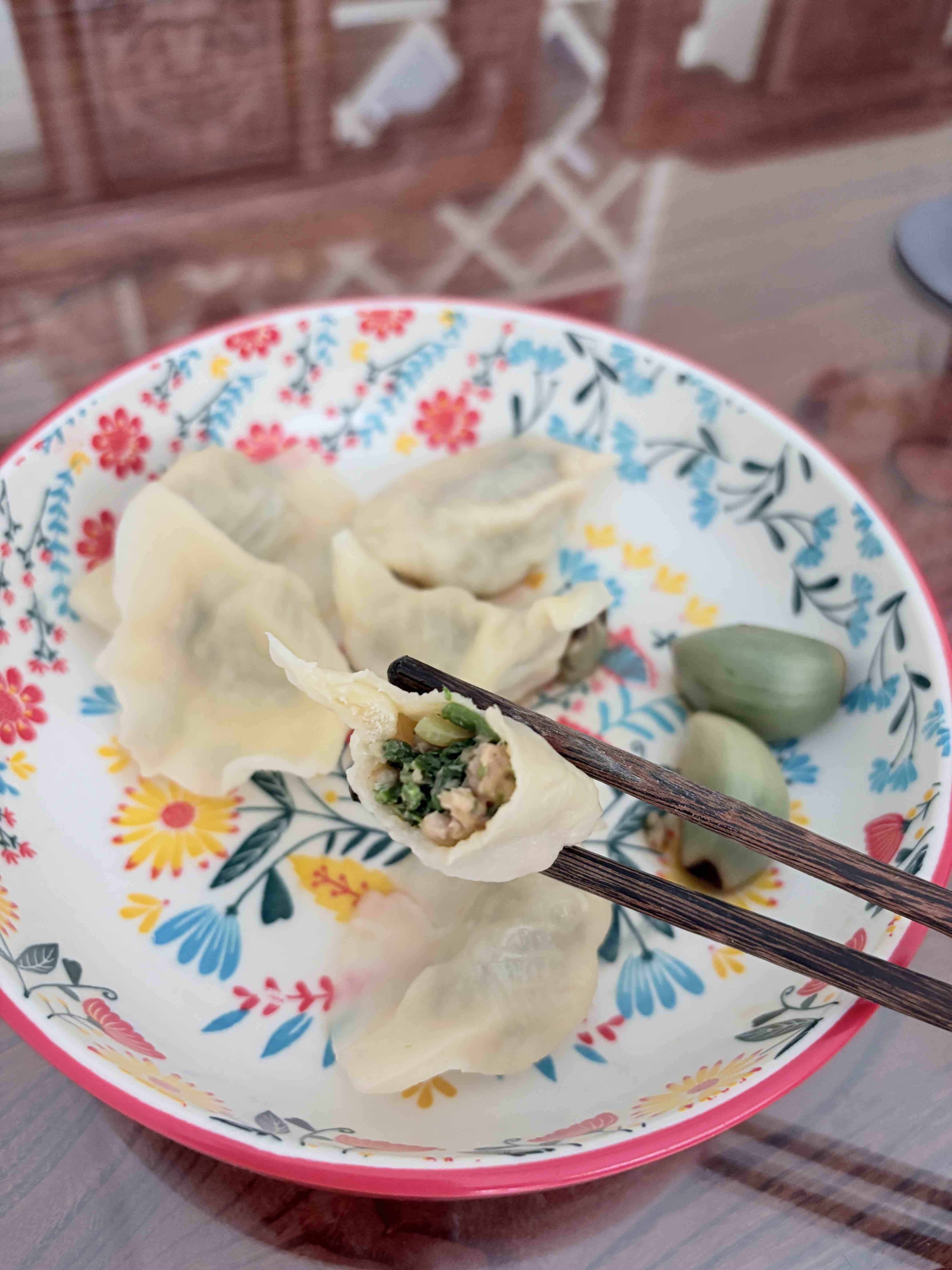 终于吃上心心念念的荠菜肉水饺了,很哇塞……