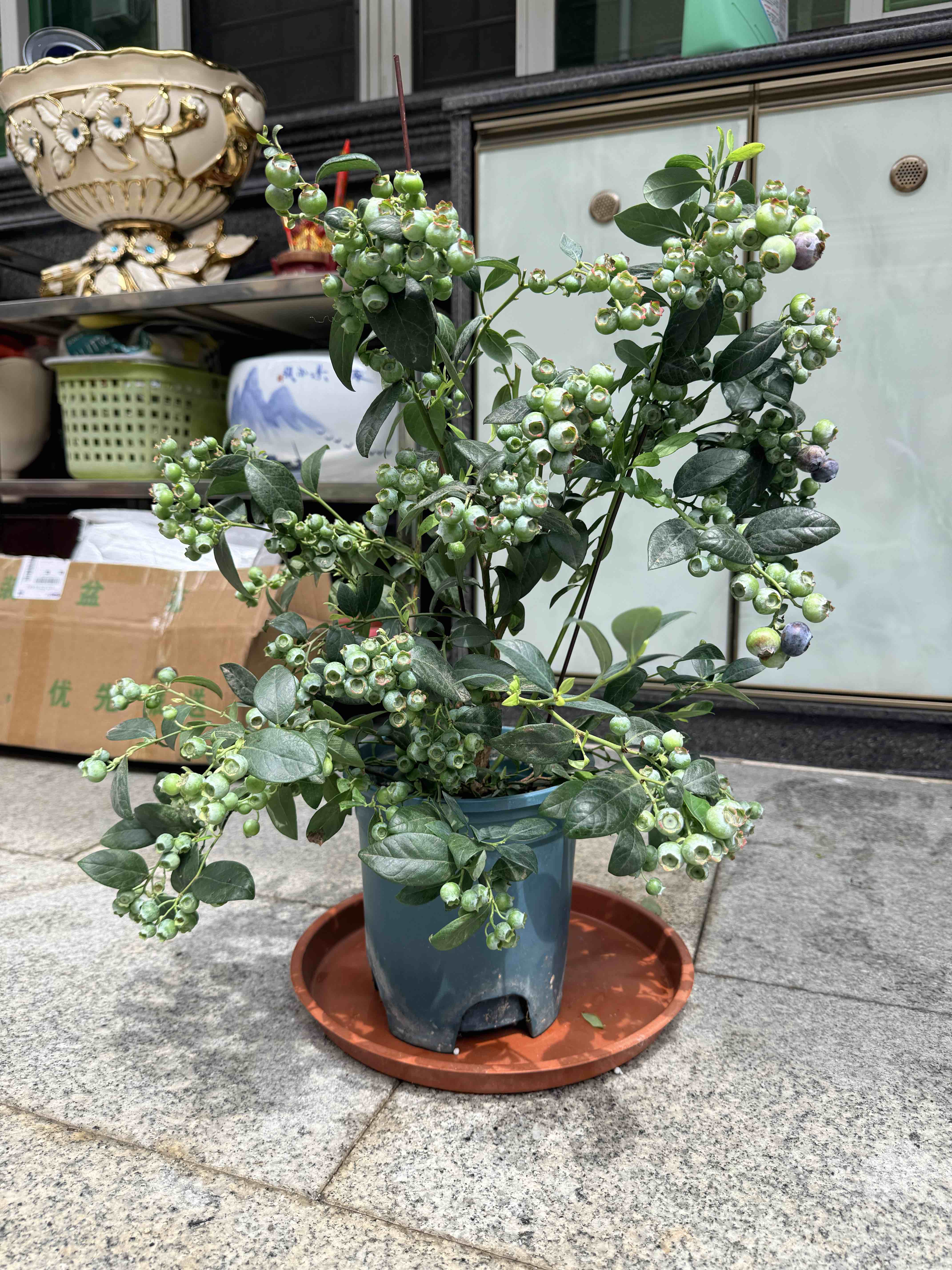 买了一颗蓝莓树,麻麻每天出去晒太阳,都会帮我把蓝莓树拖出去,跟她一起晒太阳,蓝莓都熟了好几颗啦!我的妈妈真可爱(*´▽`*)