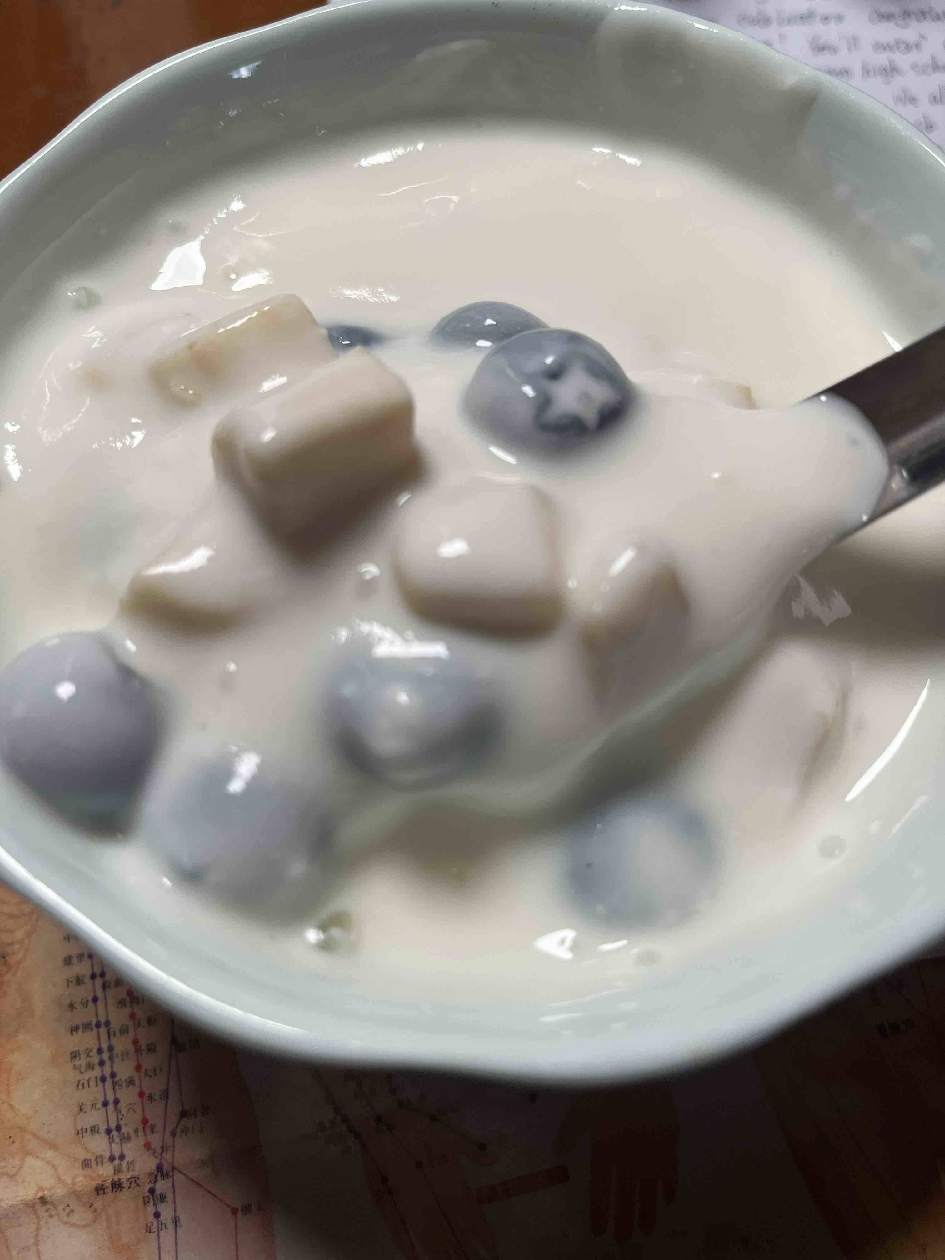 自制酸奶,不放糖,用香蕉切碎和蓝莓调味。