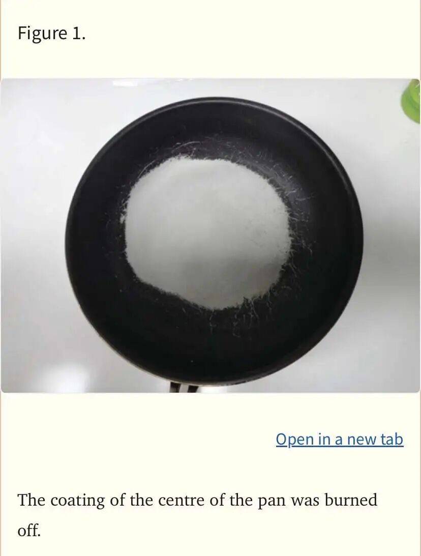 当时被烧干的锅,锅中心的涂层已经完全烧没了(图源:参考文献[5])