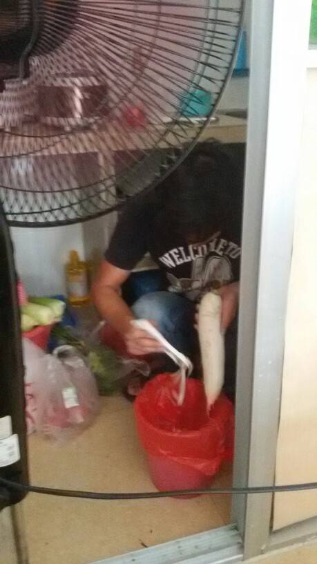 一般都是他炒菜,我只负责煮个面条稀饭之类的…有时候插手,他还有点小气地说说“来来来,你炒”