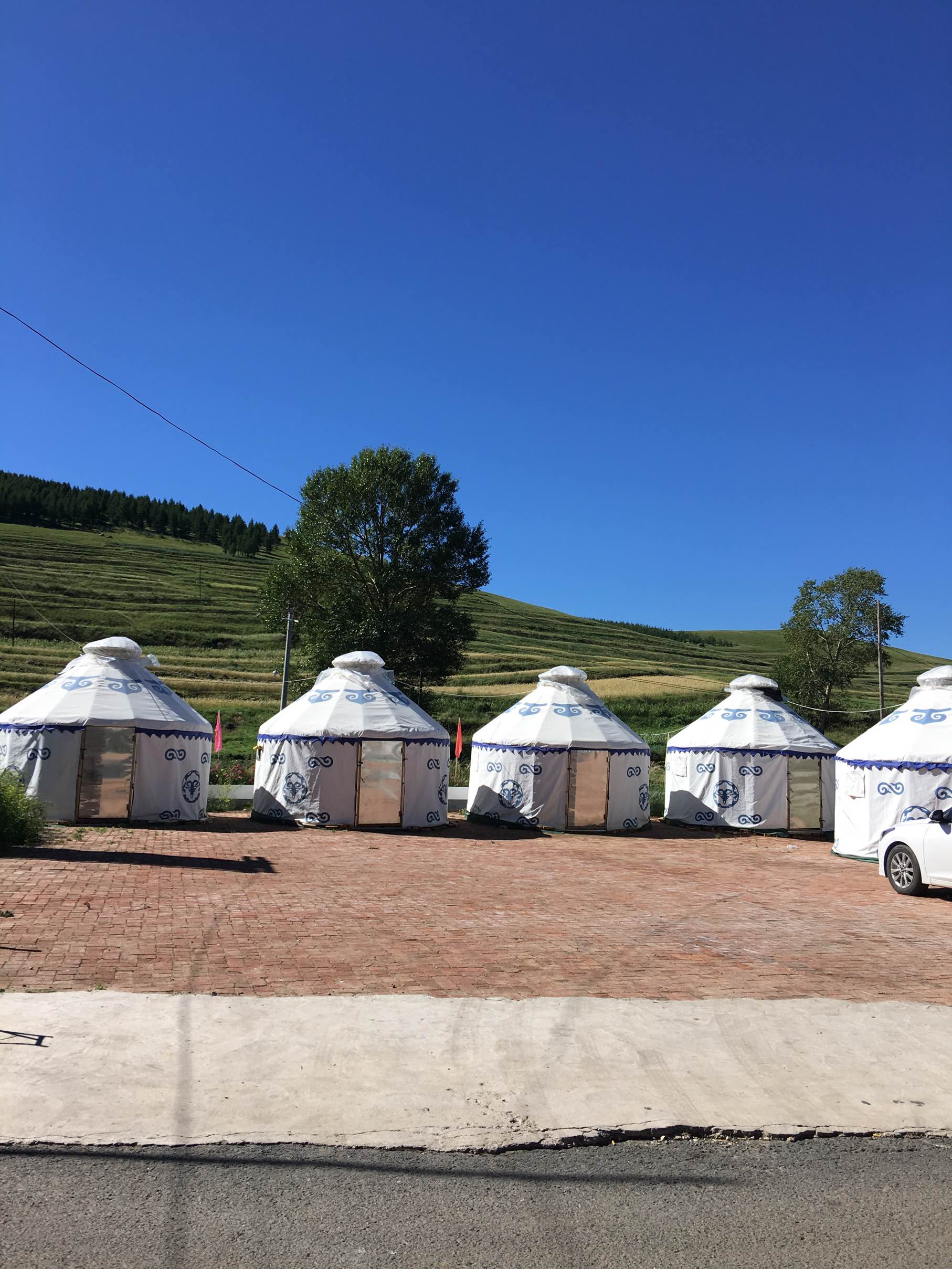 蓝蓝的天,美丽的花,漂亮的蒙古包。好美呀😄
