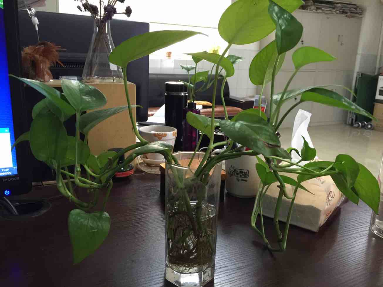 绿萝,好养的植物,只要有水就能生长。