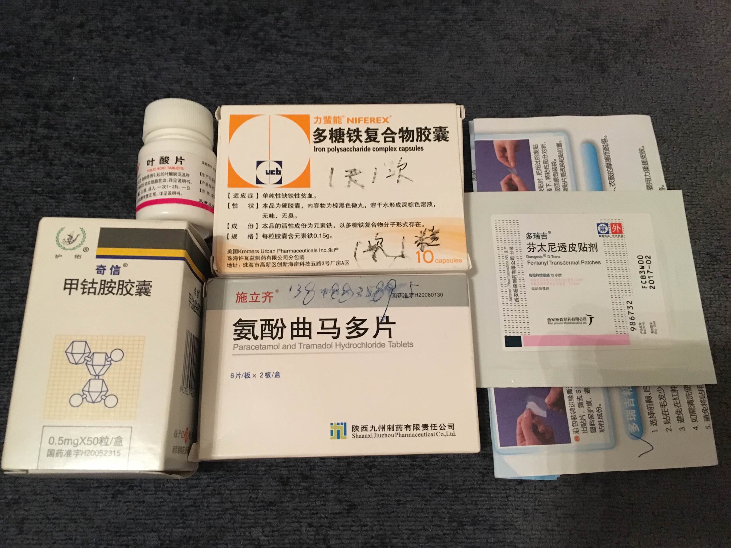 整理了一些爸爸剩下的药,特罗凯靶向药和治疗肺积水的偏方中药给了朋友的爸爸,现在只剩下很多止疼药,虽然他父亲也是肺鳞癌,但是没有转移,没有癌痛。其中我给爸爸托人在石家庄中医院买的延香阵痛胶囊对爸爸帮助最大,是中药止痛药,副作用比较小。之前爸爸吃西药泰勒宁,但是会严重便秘,他有痔疮,会很痛苦。我上网搜到很多人都说这个止疼药不错,我就赶紧托人去买,好像是80多一瓶,一瓶30粒,每天吃两次,每次吃2到6粒,自己根据疼痛等级进行增减。爸爸自从吃了这个就不会便秘了,可能是因为中药副作用小。癌痛控制的也不错,但是每天上午会定点睡1到1小半小时,不过刚好弥补了他晚上睡很少精力不足的情况。泰勒宁是住院时开的,忘了多少钱,芬太尼止疼贴是在医院触痛门诊开的,好像80多一贴吧。泰勒宁,芬太尼剩下的不多,有谁需要的我直接赠药吧,快递到付。延香剩下的太多了,就凑个整50一瓶转让吧。不过我这些药都没有医院的单据了,有介意的就算了。